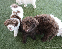 Cher and Bentley's puppies were born May 11th. They should be medium in size around 30 lbs. Colors are chocolate, chocolate parti's and chocolate with white mismatch.